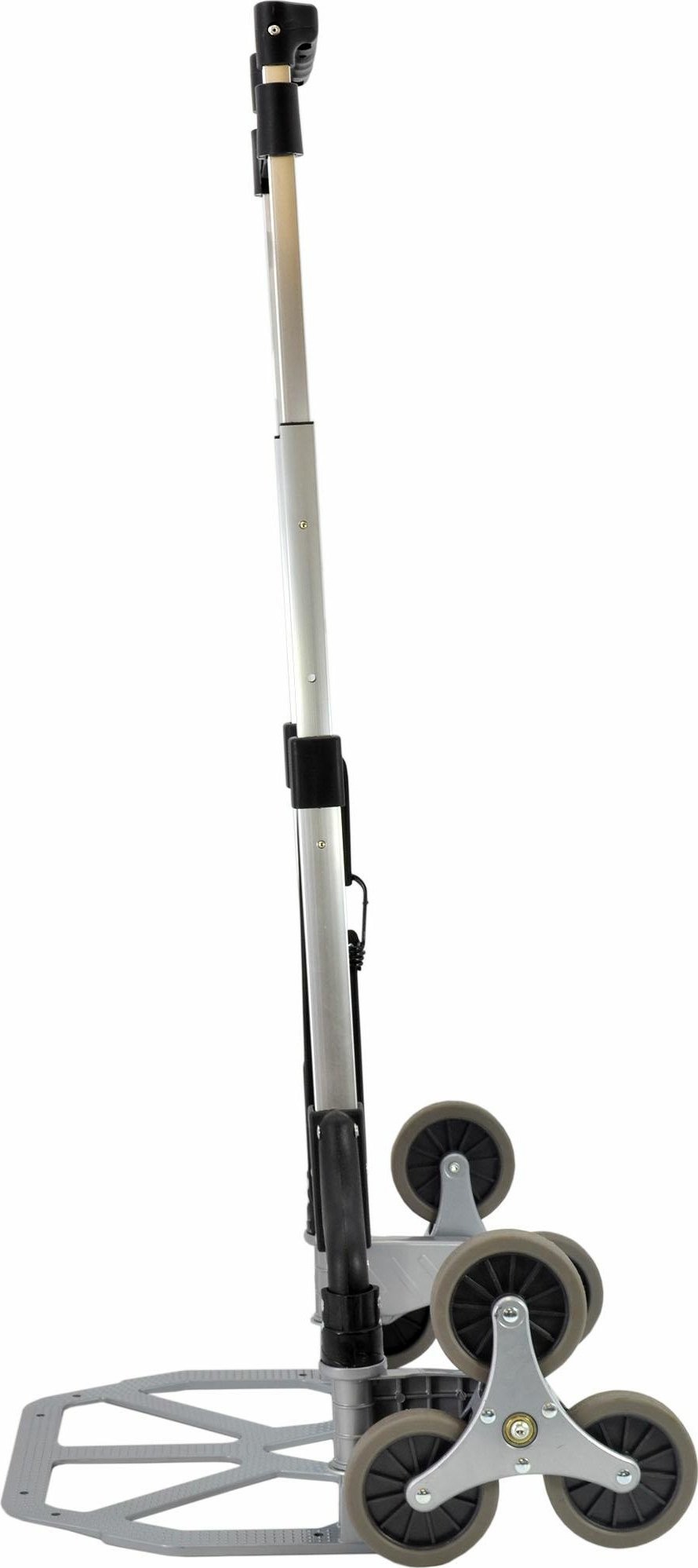 Ausgestattet mit einer Stahlplattform mit rutschfester Oberfläche, die einen stabilen Halt für die transportierten Gegenstände gewährleistet.