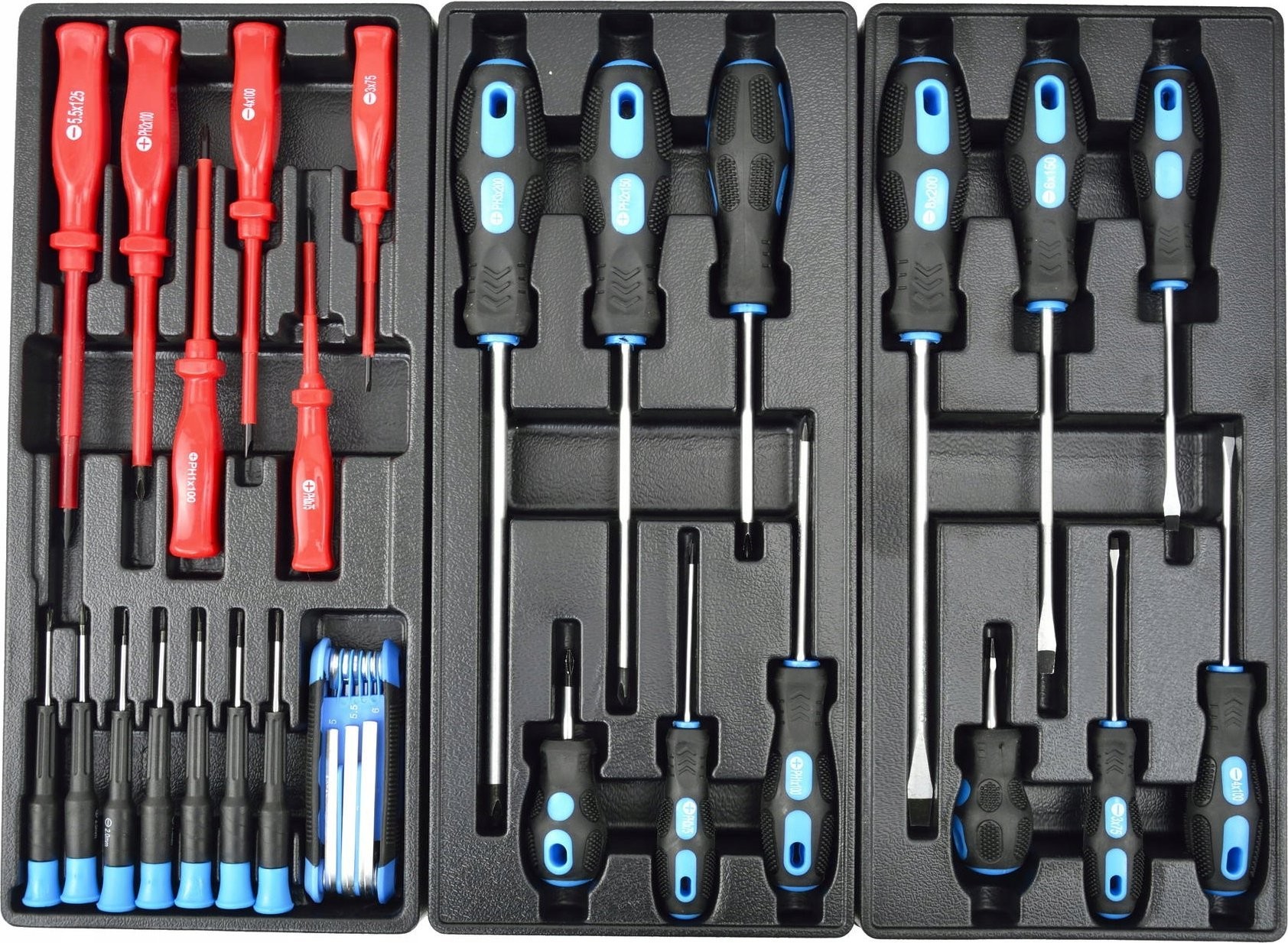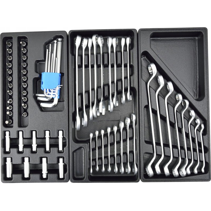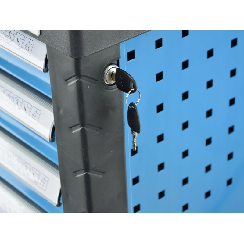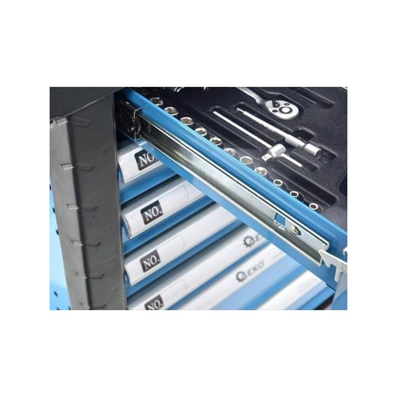 Anzahl der Teile: 272 – eine detaillierte Liste finden Sie weiter unten in der Beschreibung. Transportrollen: ja, mit Bremse. Abmessungen (Länge / Breite / Höhe): 97,5 cm / 69 cm / 45,5 cm. Abmessungen der Tischplatte: 77,5 x 46,5 cm. Anzahl der Schubladen: 7 (5 mit Einlagen und 2 leer). Gehäuse: Stahl, pulverbeschichtet. Zusätzliche Merkmale: Schlüsselschloss, Schaumstoffeinlagen in den Schubladen.