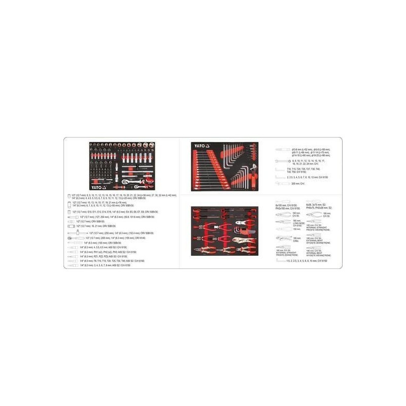 - In drei der sieben Schubladen befinden sich bis zu 157 professionelle Werkzeuge in EVA-Schaumstoffeinlagen.