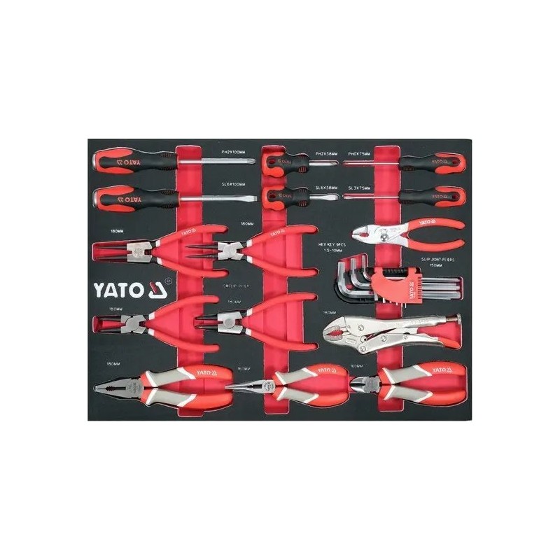 - Der neue Werkzeugschrank YT-55308 ist eine einzigartige Konstruktion mit einem Verriegelungsmechanismus, der verhindert, dass mehr als eine Schublade gleichzeitig geöffnet werden kann.