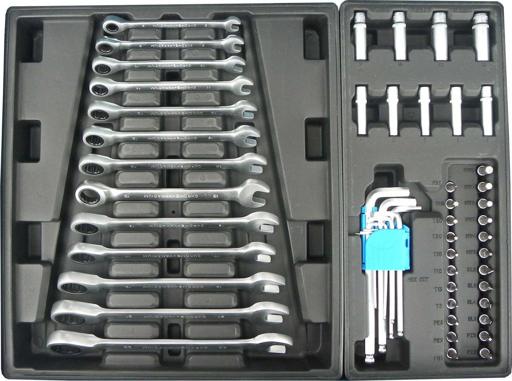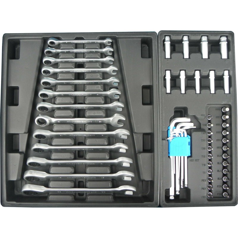 Dieser Wagen verfügt über verschiedene nützliche Zubehörteile von guter Qualität, die sofort nach dem Auspacken einsatzbereit sind. Da er bereits ausgestattet ist, müssen Sie keine Schraubenschlüssel, Steckschlüsseleinsätze und viele andere Werkzeuge, die Sie in Ihrer Werkstatt benötigen, zusätzlich kaufen.