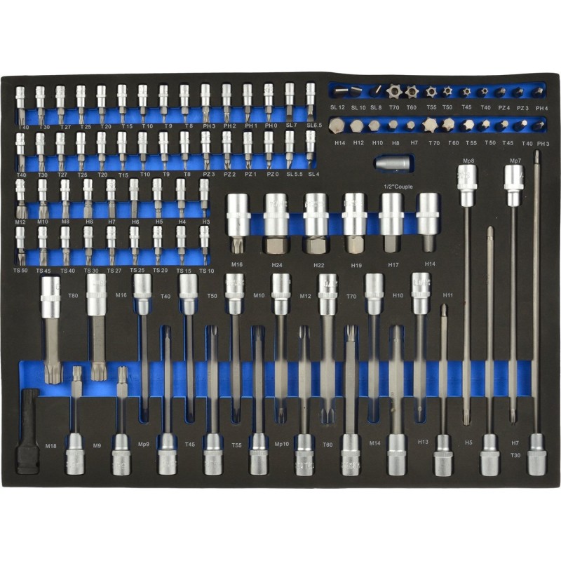 - 1/2" Standard-Sechskant-Steckschlüsseleinsätze (Länge = 36 mm): 8, 9, 10, 11, 12, 13, 14, 15, 17, 19, 20, 21, 22, 24, 27, 30, 32 mm