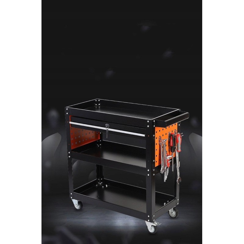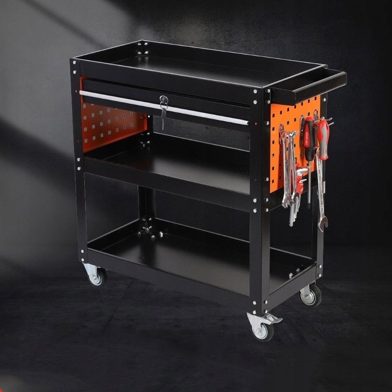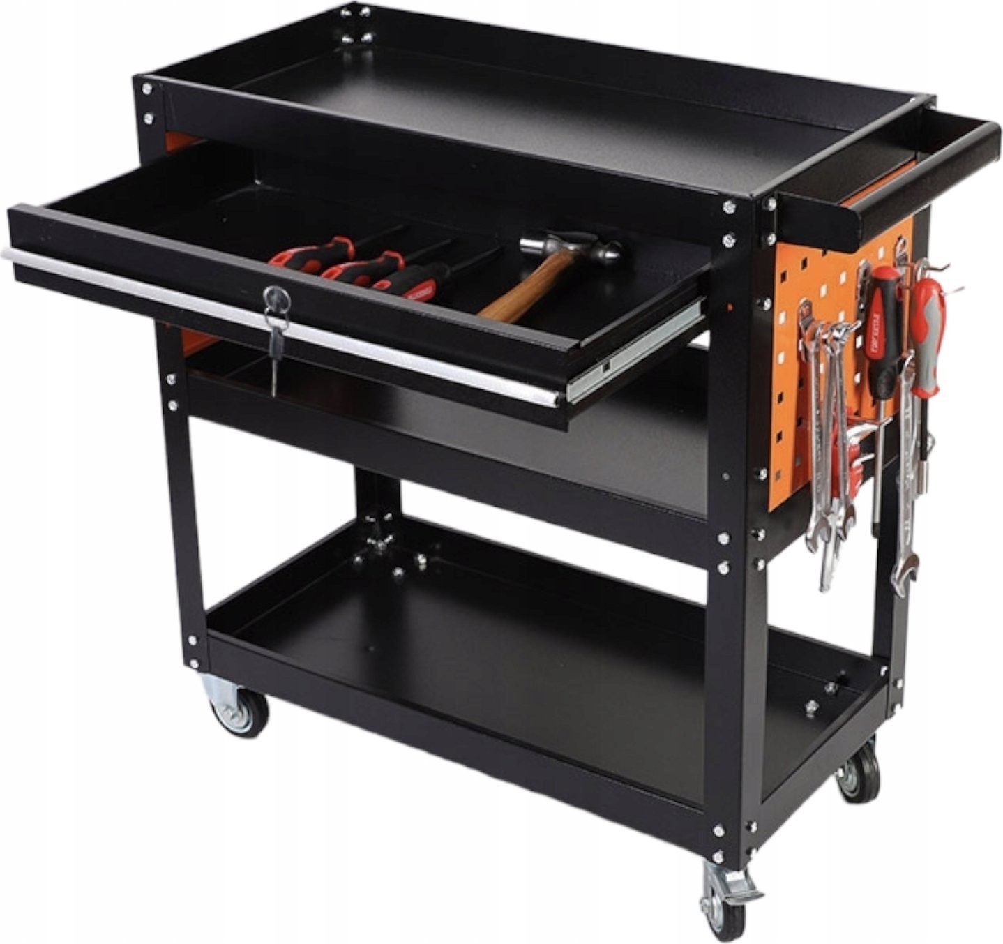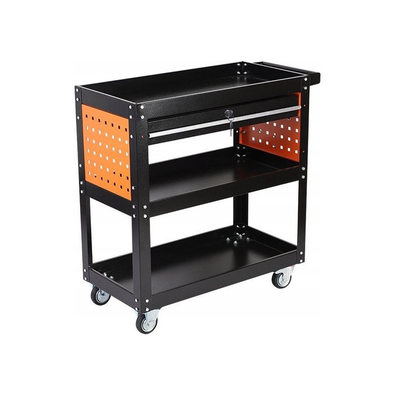 ✅ Der Werkstattwagen ist eine robuste Konstruktion mit drei Ablagen und einer Schublade