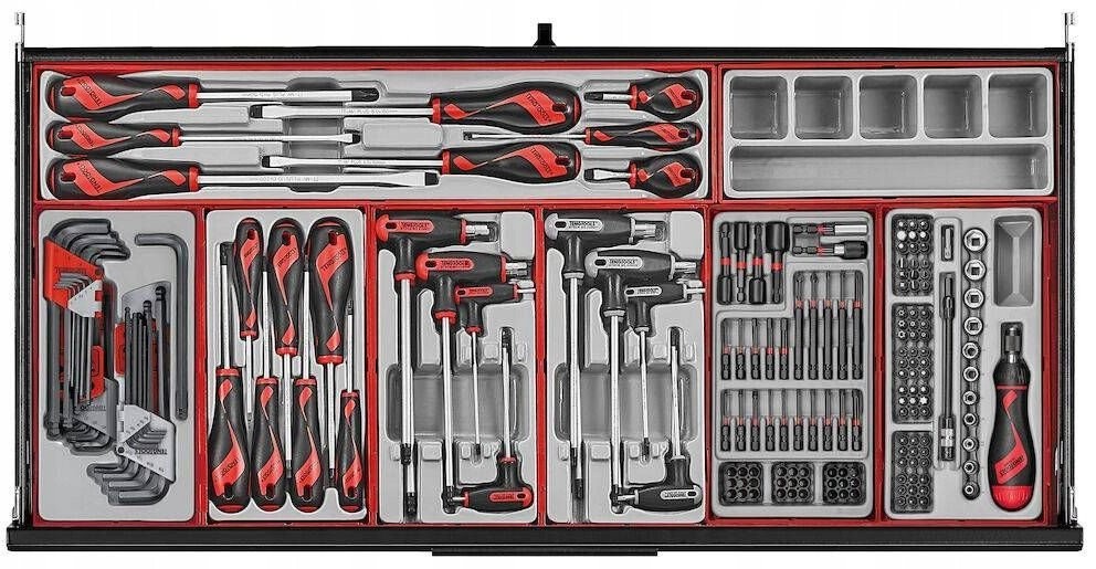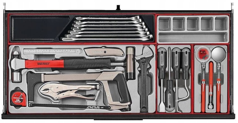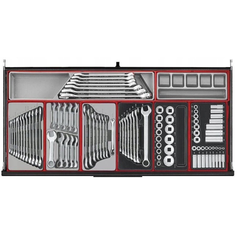 Dieser Wagen verfügt über verschiedene nützliche Zubehörteile von guter Qualität, die sofort nach dem Auspacken einsatzbereit sind. Da er bereits ausgestattet ist, müssen Sie keine Schraubenschlüssel, Steckschlüsseleinsätze und viele andere Werkzeuge, die Sie in Ihrer Werkstatt benötigen, zusätzlich kaufen.
