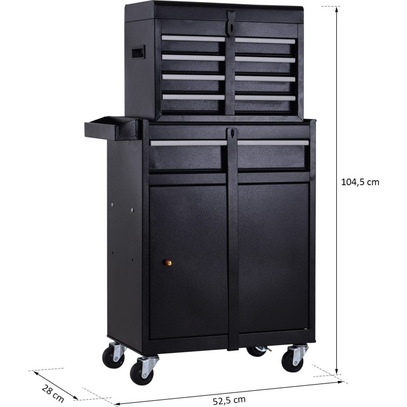 Werkzeugwagen mit 5 Schubladen, 52,5 x 28 x 104,5 cm – Schwarz