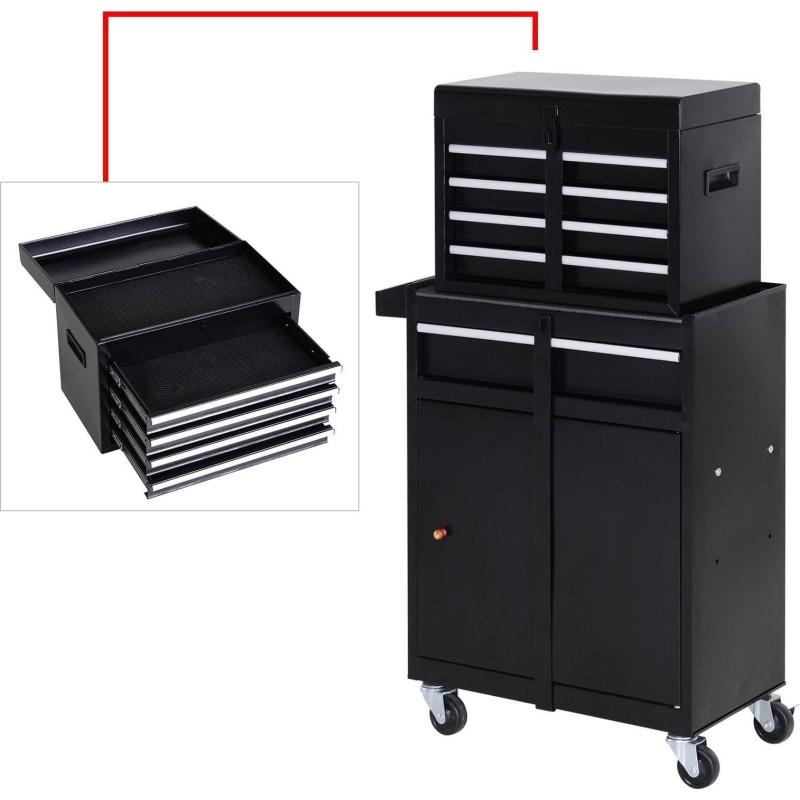 Jedes in der Werkstatt verwendete Werkzeug braucht seinen eigenen Platz, um für Ordnung zu sorgen. 5 Schubladen bieten jede Menge Platz für die unterschiedlichsten Werkzeuge. Außerdem ist der Schrank auf Rollen, sodass er problemlos von einem Ort zum anderen transportiert werden kann.
