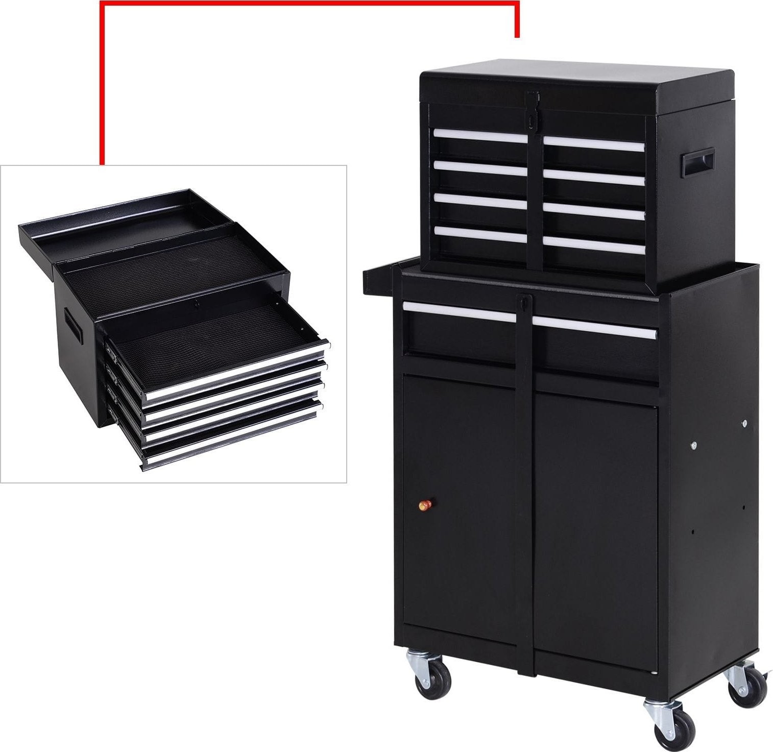 - Der mit 5 Schubladen ausgestattete Schrank hilft dir, Ordnung in deiner Garage zu schaffen