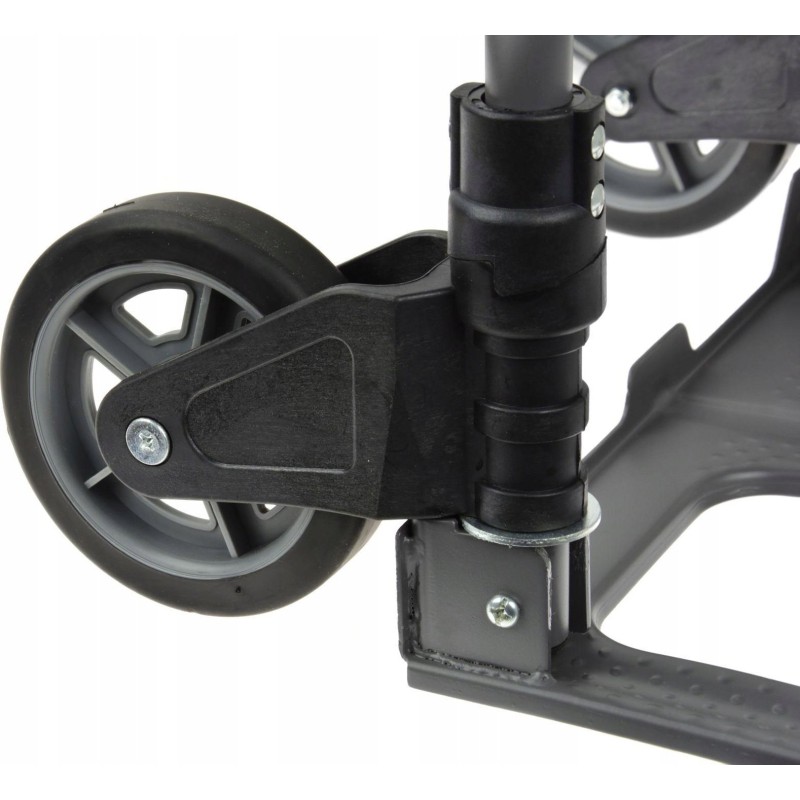 - Robuste Gummiräder – mit einem Durchmesser von 120 mm sorgen sie für hohe Wendigkeit und Laufruhe auf verschiedenen Oberflächen,