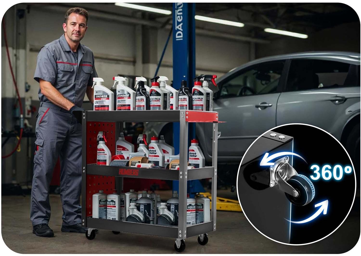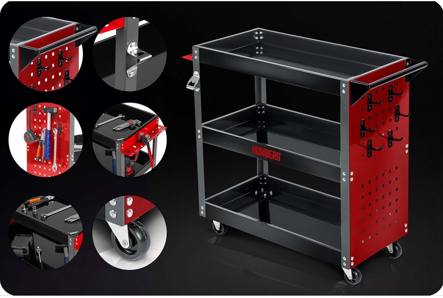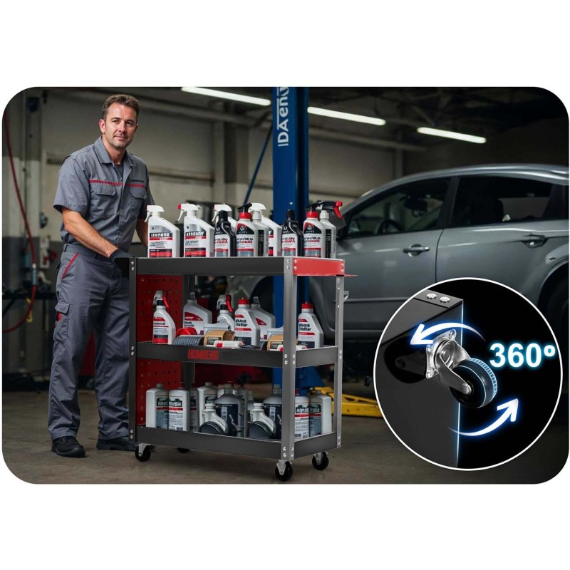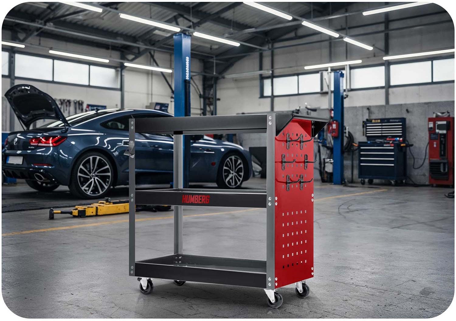 Das Modell HM-515 ist ein speziell für den Werkstatteinsatz entwickelter Wagen – ideal für die Aufbewahrung und den Transport von Werkzeugen, Teilen und Zubehör. Er eignet sich sowohl für professionelle Werkstätten als auch für die heimische Garage.