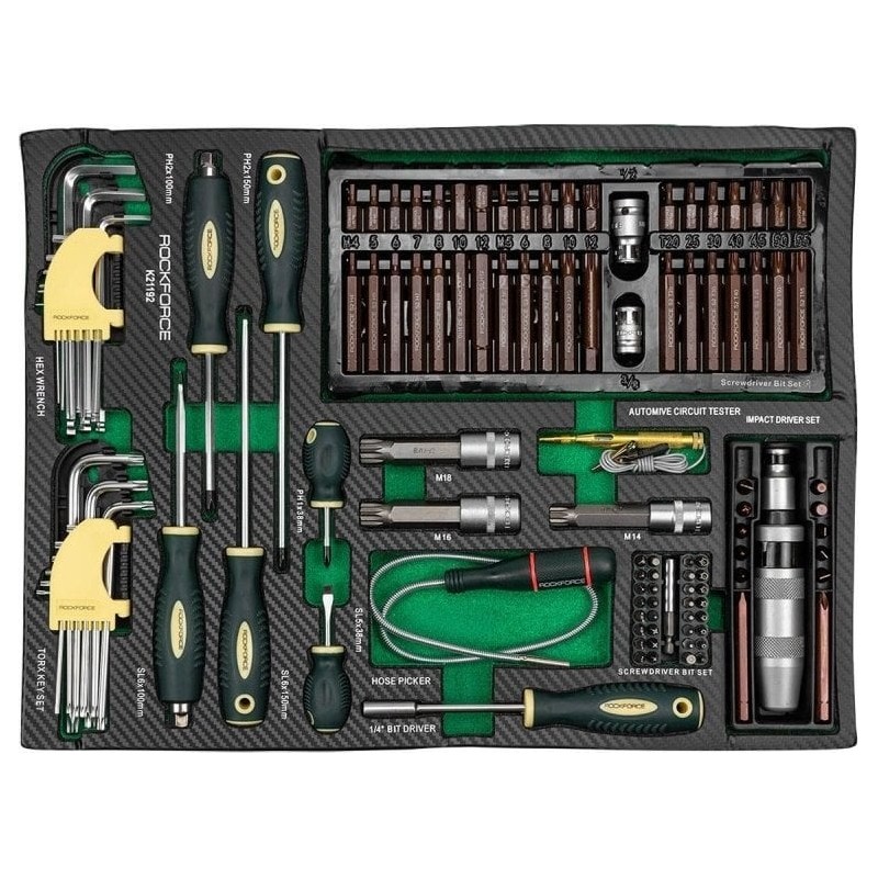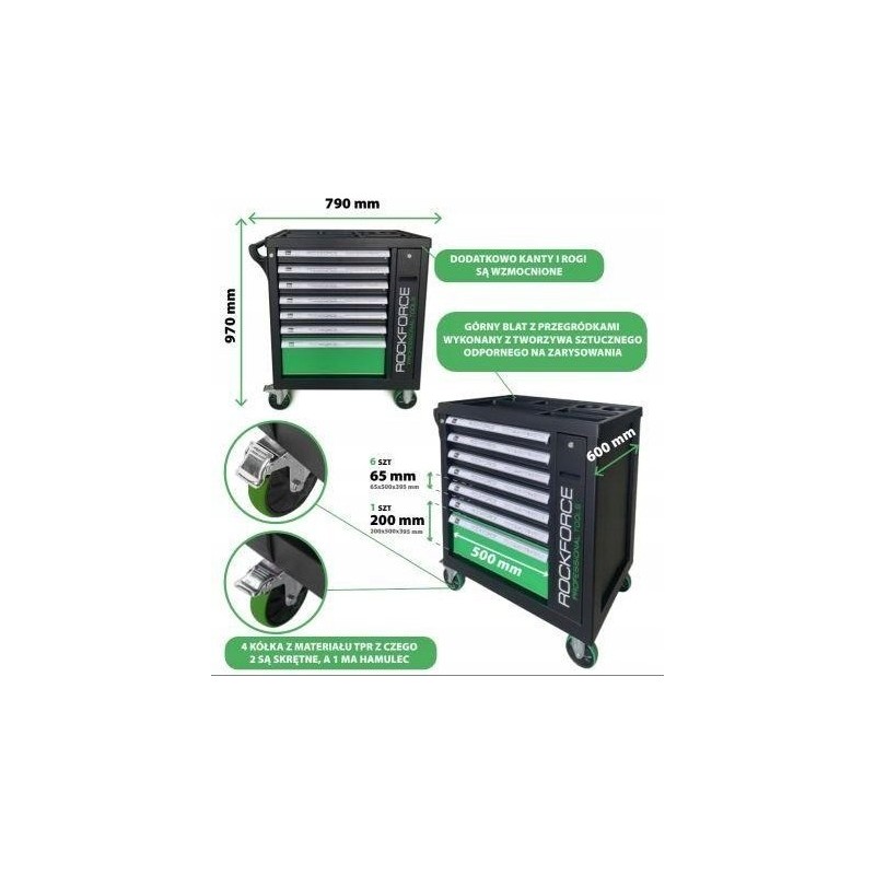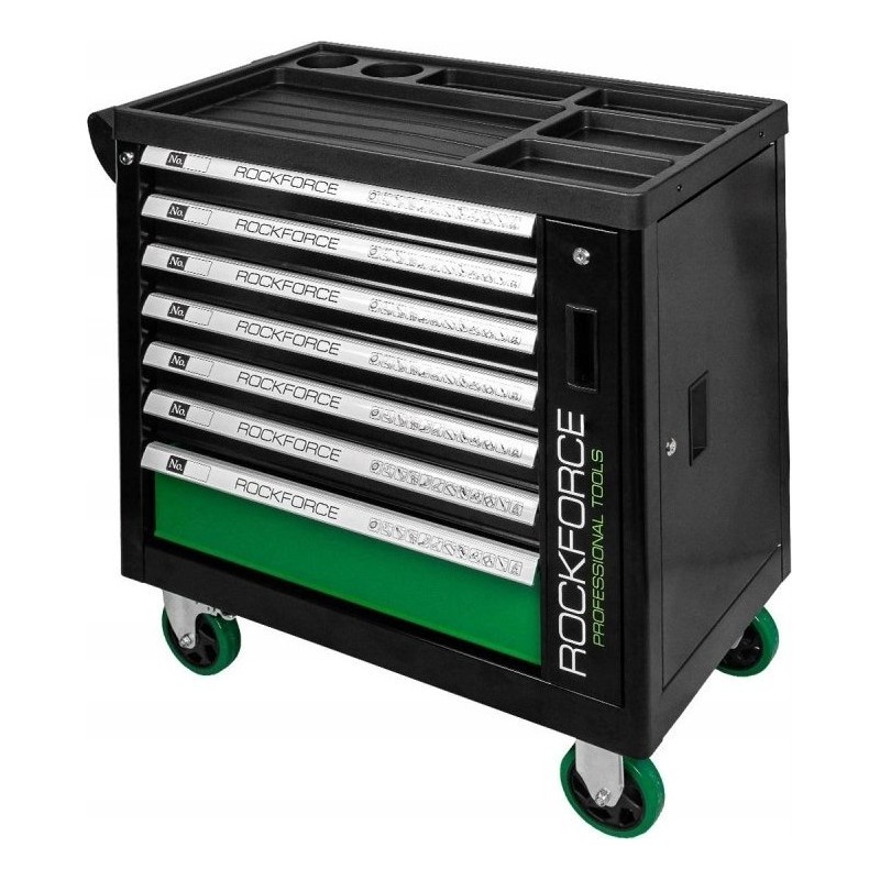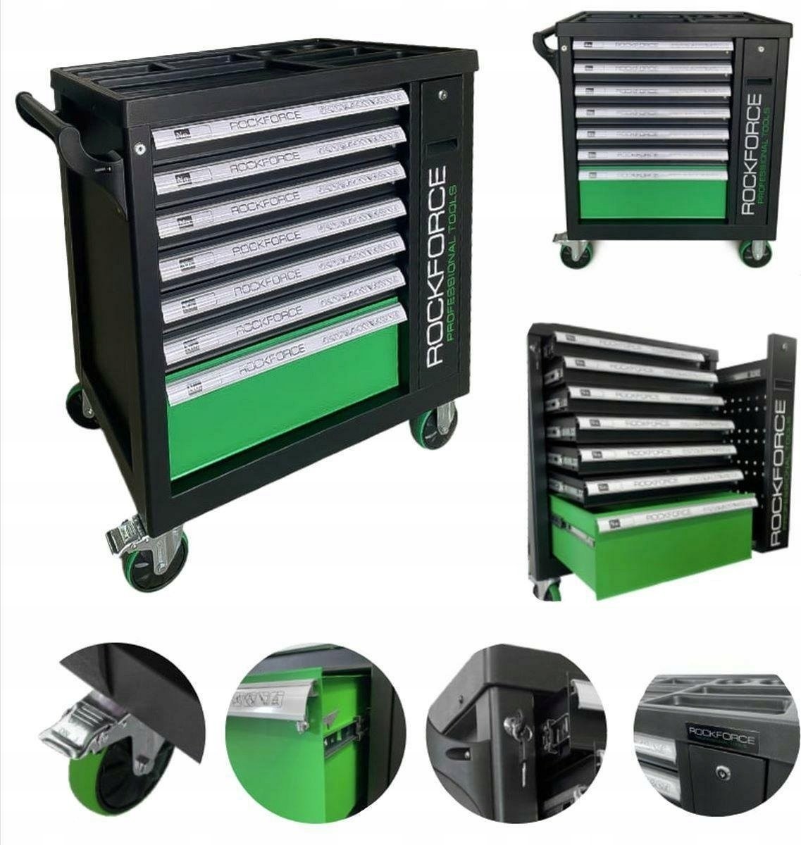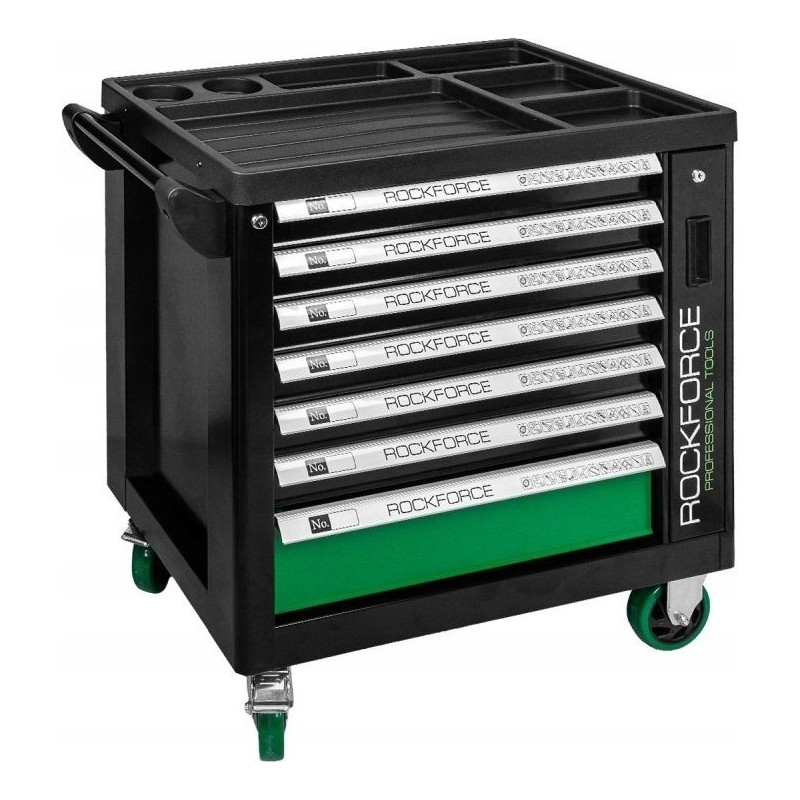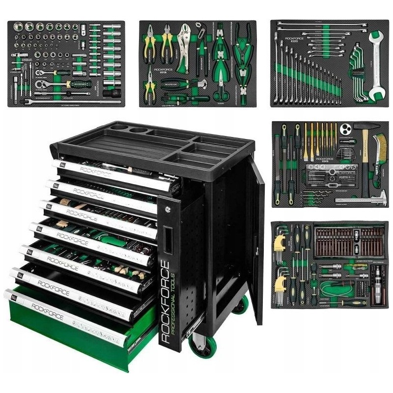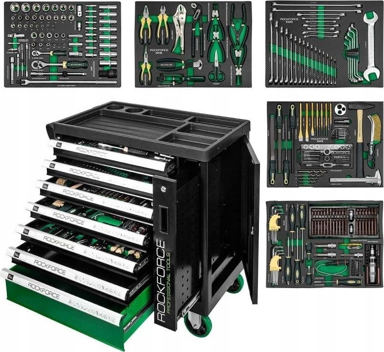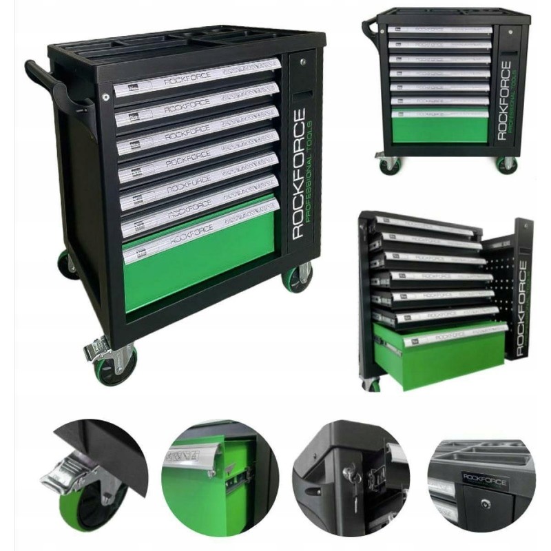 Rockforce-Werkzeugwagen: Werkzeugschrank mit 7 Schubladen + 274 Werkzeuge + seitliches Staufach