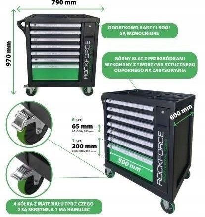 Dieser Wagen verfügt über verschiedene nützliche Zubehörteile von guter Qualität, die sofort nach dem Auspacken einsatzbereit sind. Da er bereits ausgestattet ist, müssen Sie keine Schraubenschlüssel, Steckschlüsseleinsätze und viele andere Werkzeuge, die Sie in Ihrer Werkstatt benötigen, zusätzlich kaufen.