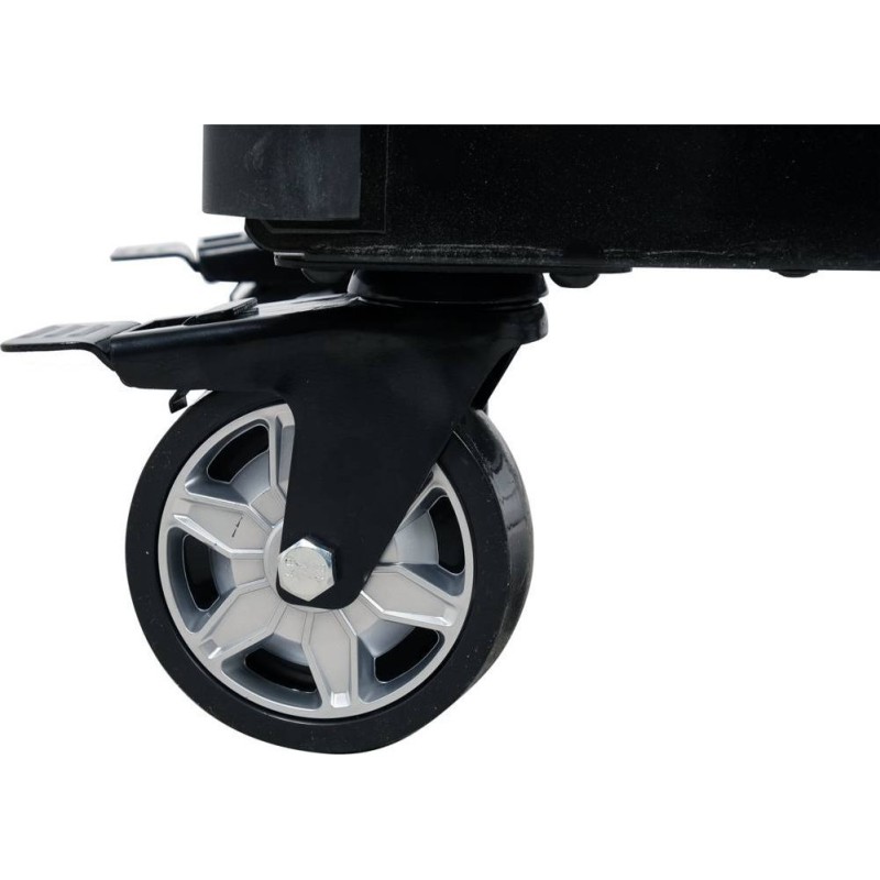 Dieser Wagen verfügt über eine Arbeitsfläche mit rutschfestem Material, das verhindert, dass darauf liegende Werkzeuge von selbst verrutschen. So musst du dir keine Sorgen machen, dass Werkzeuge oder wichtige Autoteile, die auf dem Wagen liegen, herunterfallen und beschädigt werden.