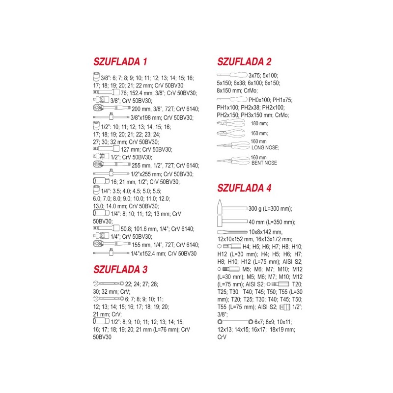 - Anzahl der Werkzeuge im Wagen 177 Stück
