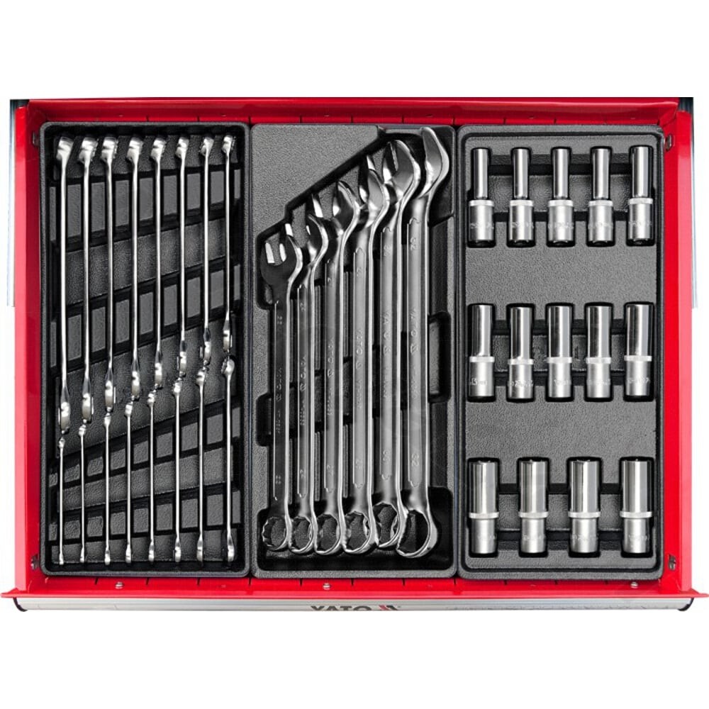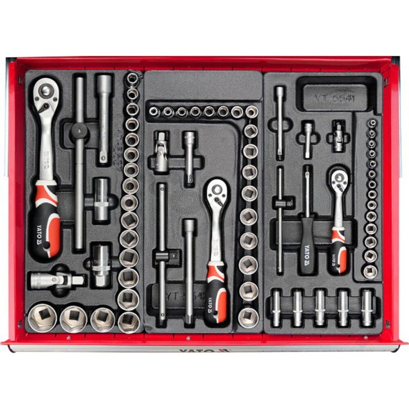 - YT-5537 Steckschlüsselsatz, 24-teilig: Steckschlüsseleinsätze und Zubehör 1/2'', Schublade,