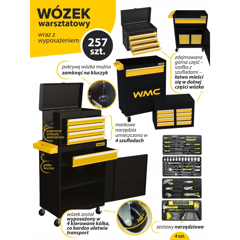 Werkzeugwagen, Werkstattschrank, 5 Schubladen, 257 EL. WMC