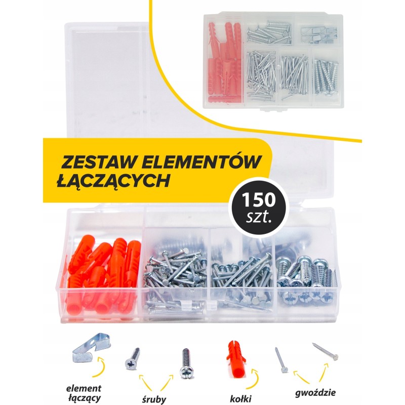 - Verbindungsset (Schrauben, Dübel, Verbinder usw.) – 150 Stk.