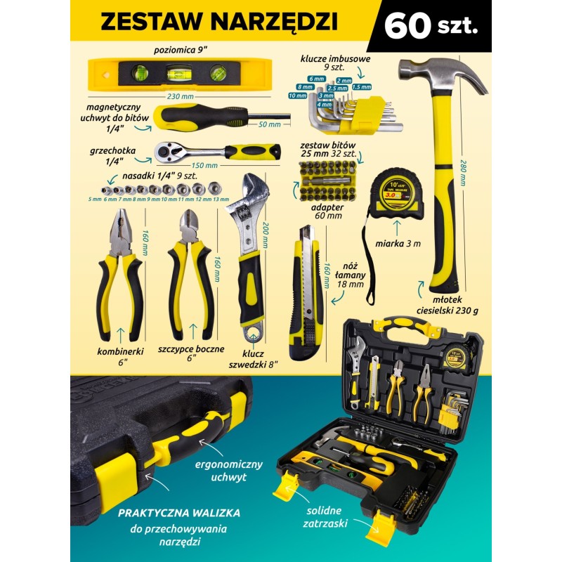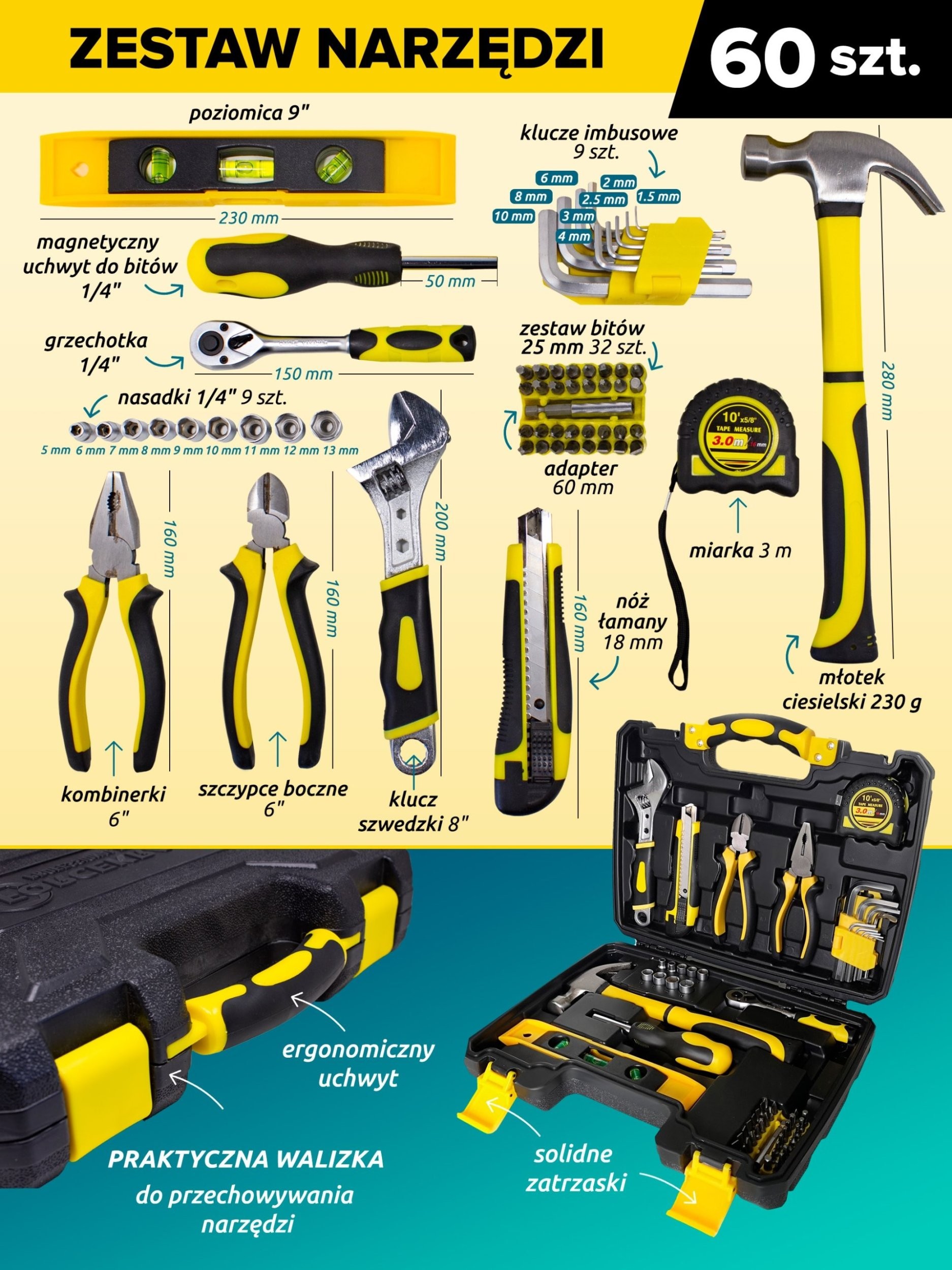 Das Werkzeugset ist ideal für Heimwerker und professionelle Handwerker. Mit diesen Werkzeugen lassen sich Arbeiten sowohl zu Hause als auch in der Werkstatt effizient ausführen. Dieses funktionale Werkzeugset enthält die wichtigsten Werkzeuge, die in jedem Haushalt oder jeder Werkstatt unverzichtbar sind.