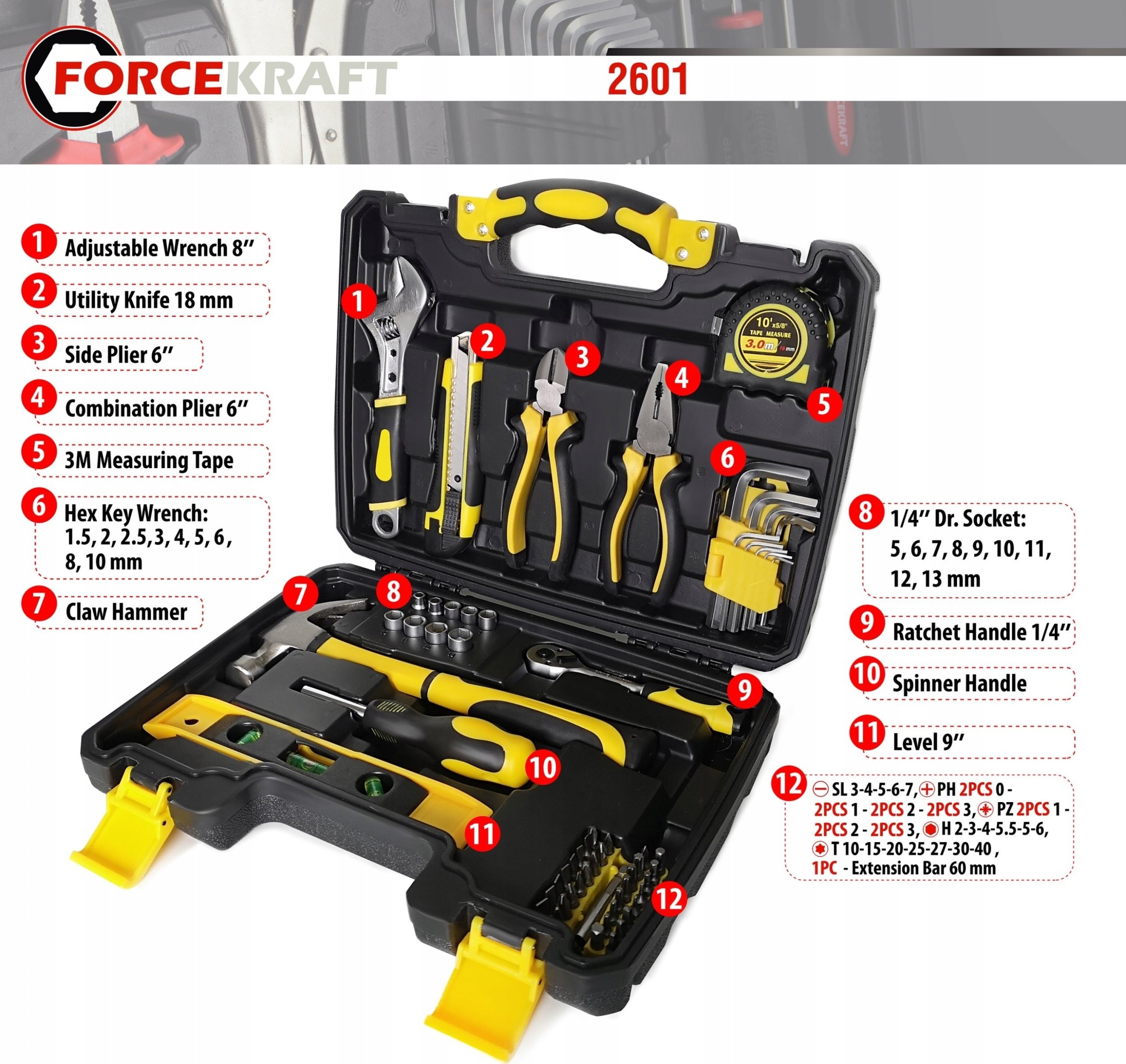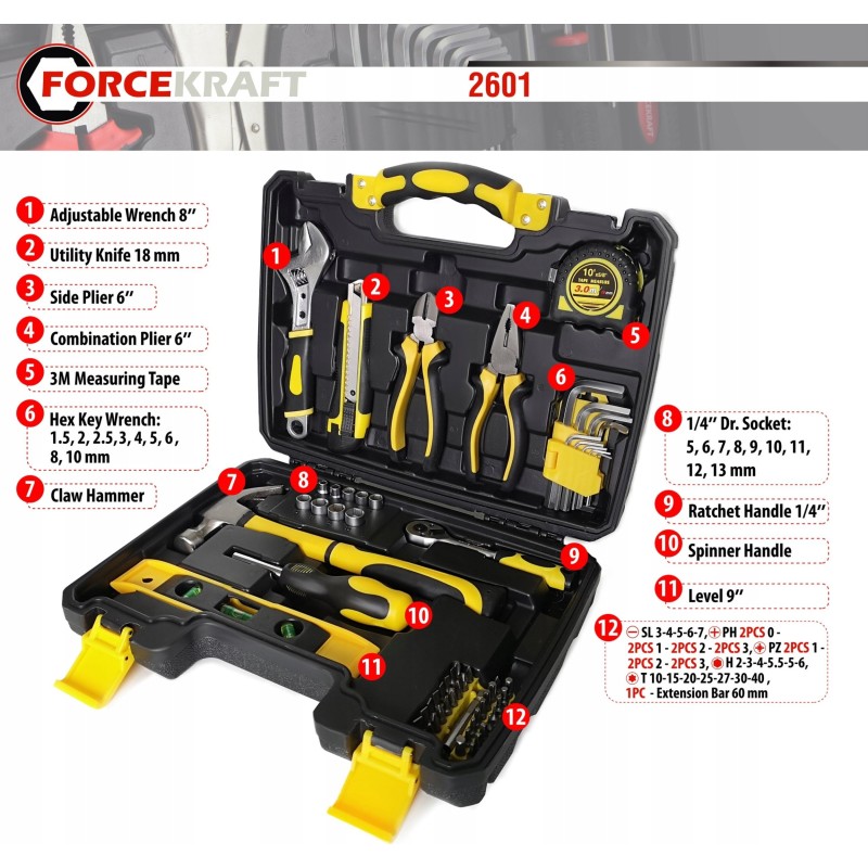 Kompletter 60-teiliger Werkzeugsatz der Marke FORCEKRAFT