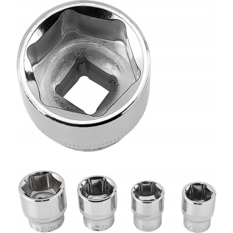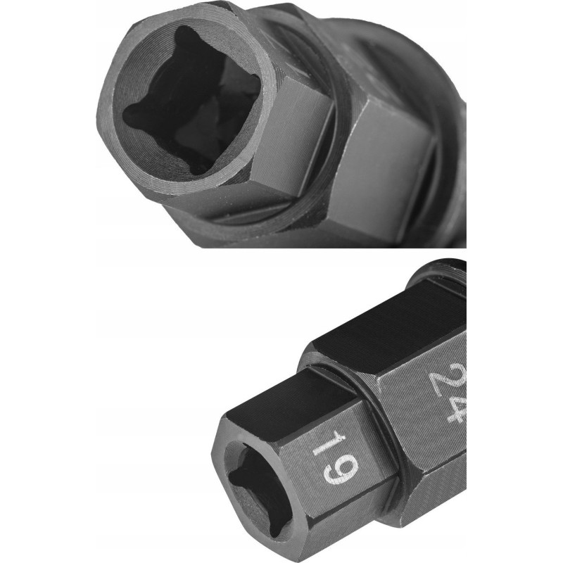 - 4x Sechskant-Steckschlüsseleinsätze 3/8” (Größen: 15, 16, 19, 22 mm)