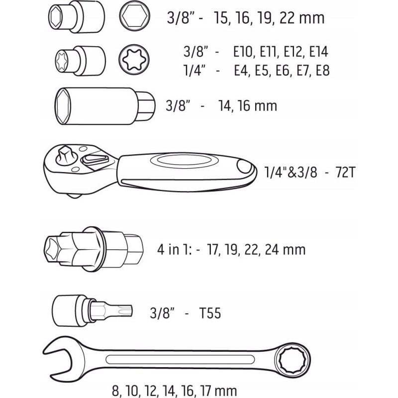 Neo-Werkzeugset Motorrad-Werkzeugset, 25-teilig, 10–500