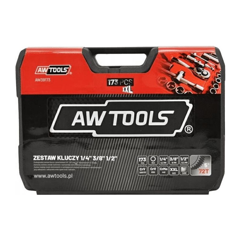 AWTools Schraubenschlüsselsatz, 173-teilig, 1/2", 3/8", 1/4" (AW39173)