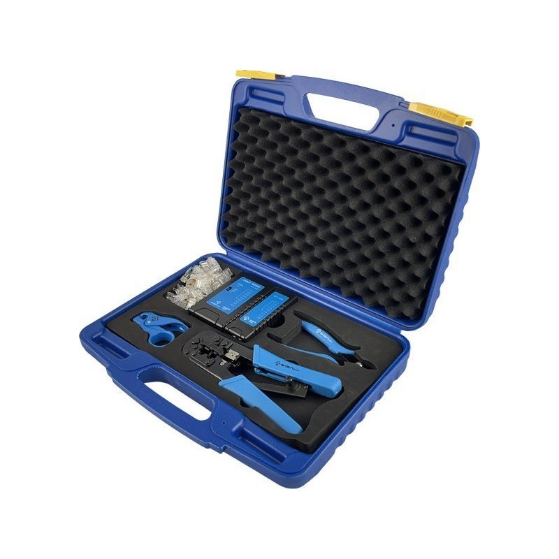 Spezial-Installationswerkzeugsatz im Koffer (Prüfgerät, LSA-Messer, Crimpzange, Abisolierzange, Seitenschneider) ALANTEC