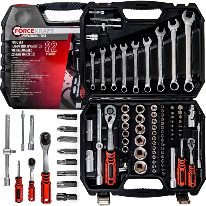 Forcekraft-Werkzeugsatz, 82-teilig, 1/2", 1/4" (Sechskant) (4–32 mm), „Profi“