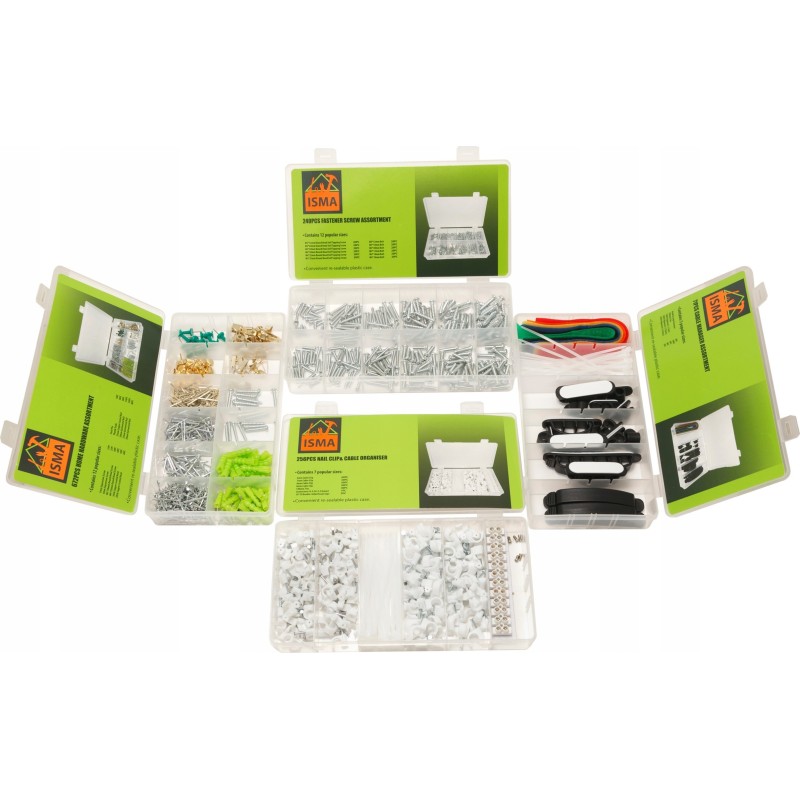 - 1239 Stück Befestigungsmaterial-Set: Schrauben, Dübel, Kabelbinder usw.