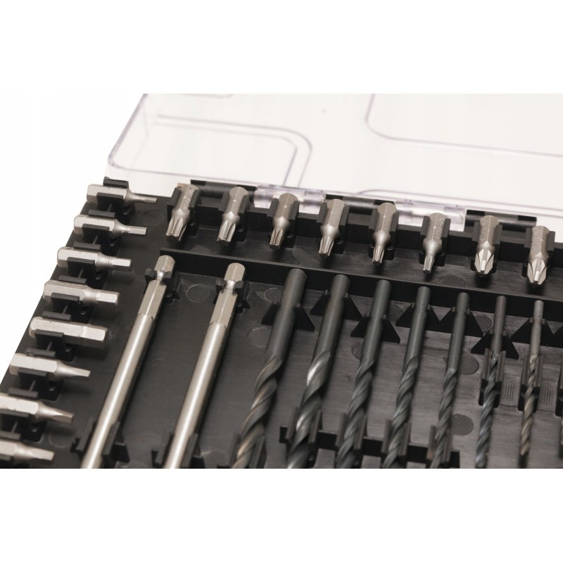 - 46 Stück 25-mm-Bits: SL 3-4-5-6-7, PH 1-2-3, PZ 1-2-3, S 1-2-3, H 2-3-4-5-6 mm, T 10-15-20-25-27-30