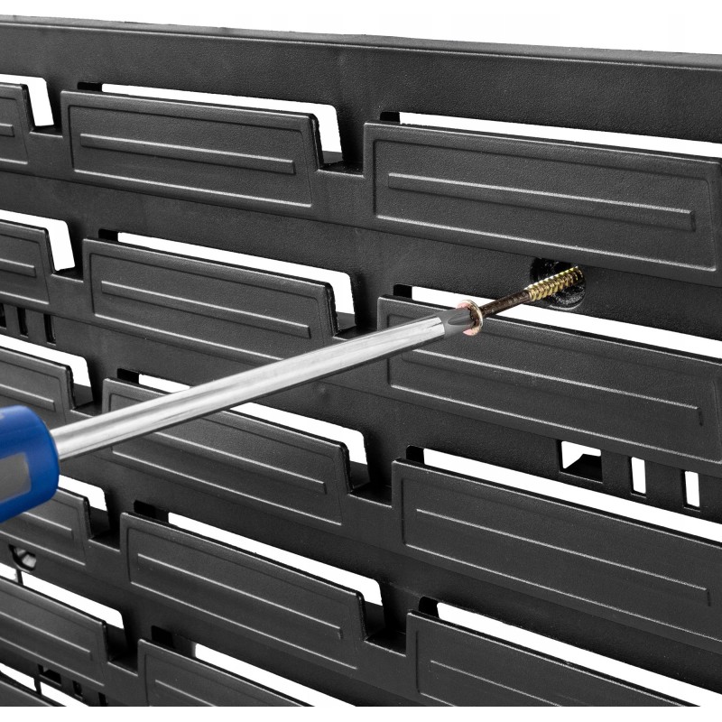 Nie wieder wirst du Zeit damit verschwenden, nach Schraubendrehern und anderen benötigten Werkzeugen zu suchen. Diese solide Wand hilft dir, Zeit zu sparen, die du normalerweise damit verbringen würdest, Zubehör zu suchen. Finde heraus, warum es sich lohnt, eine solche Wand in deiner Werkstatt zu haben!