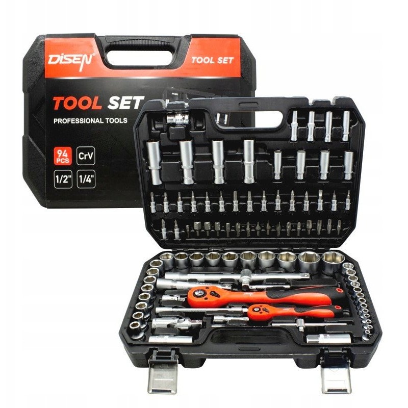 Werkzeugset mit Steckschlüsseleinsätzen 1/2'' und 1/4'', 94-teilig – Ein Muss für jeden Heimwerker