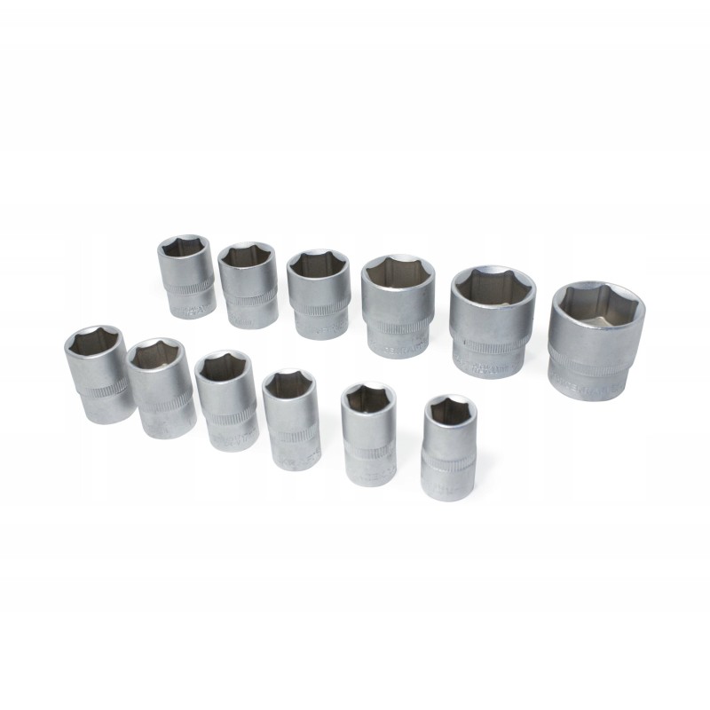 - Steckschlüsseleinsätze 1/2": 18 Stück (Größen: 10–32 mm)
