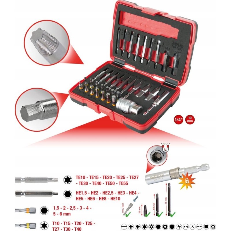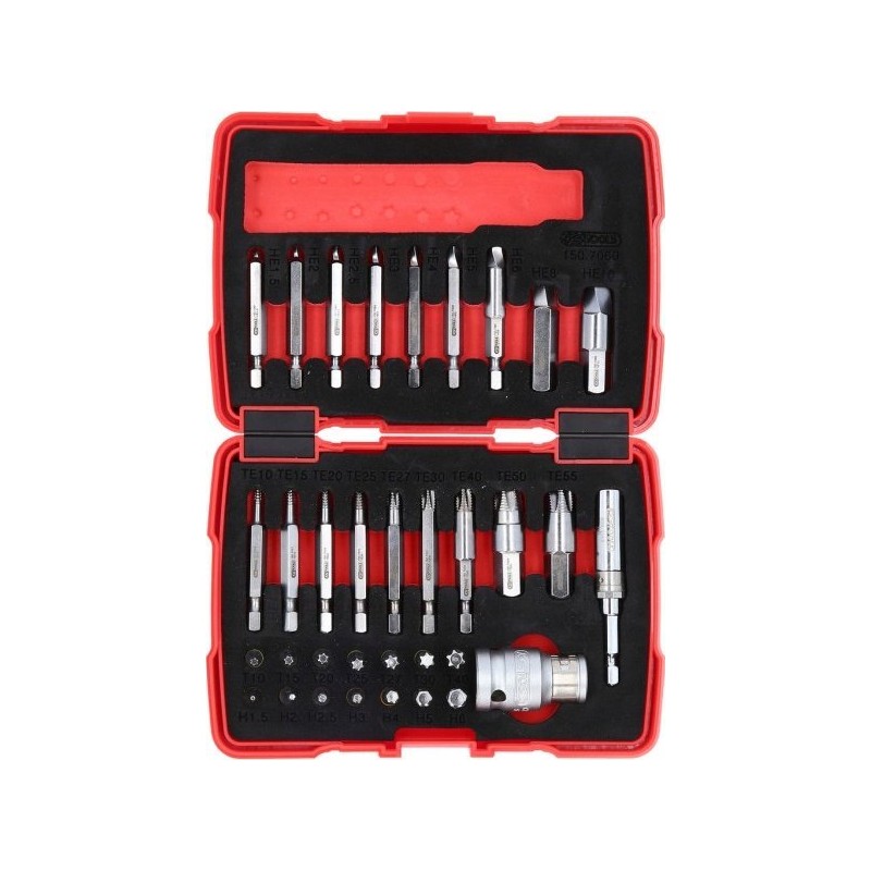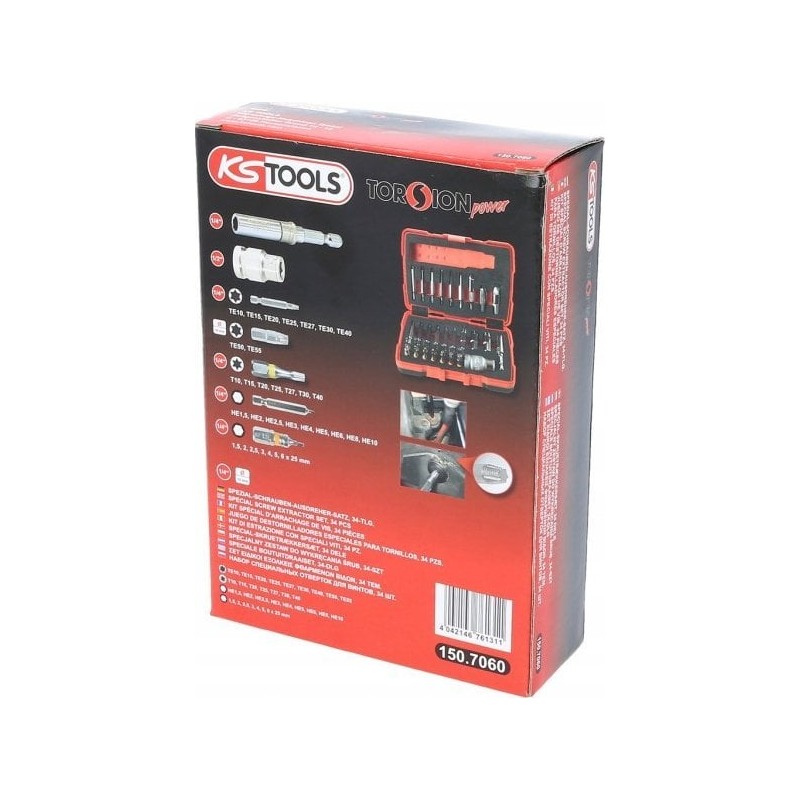 Das Set zum Lösen von Torx- und Inbusschrauben von KS Tools ist eine hervorragende Wahl sowohl für Hobbyhandwerker als auch für Profis. Das Modell 150.7060 enthält 34 verschiedene Teile, die das Lösen und Entfernen von beschädigten Schrauben und Bolzen erleichtern. Mit diesem Werkzeug werden alle Reparaturarbeiten einfacher und effektiver.