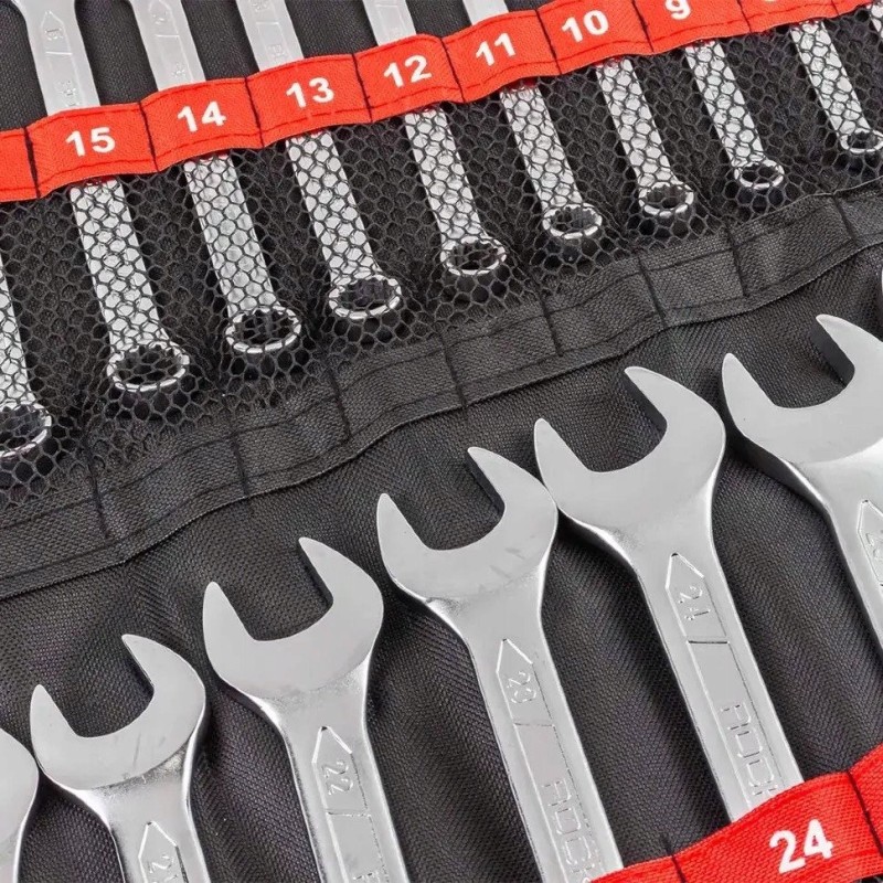 Die Schraubenschlüssel sind aus Chrom-Vanadium-Stahl gefertigt, was ihnen eine außergewöhnliche Langlebigkeit und Widerstandsfähigkeit gegen Beschädigungen verleiht. Dadurch eignet sich das Set perfekt für den Einsatz unter schwierigen Bedingungen und garantiert eine lange Lebensdauer, ohne dass Sie sich um die Haltbarkeit sorgen müssen.