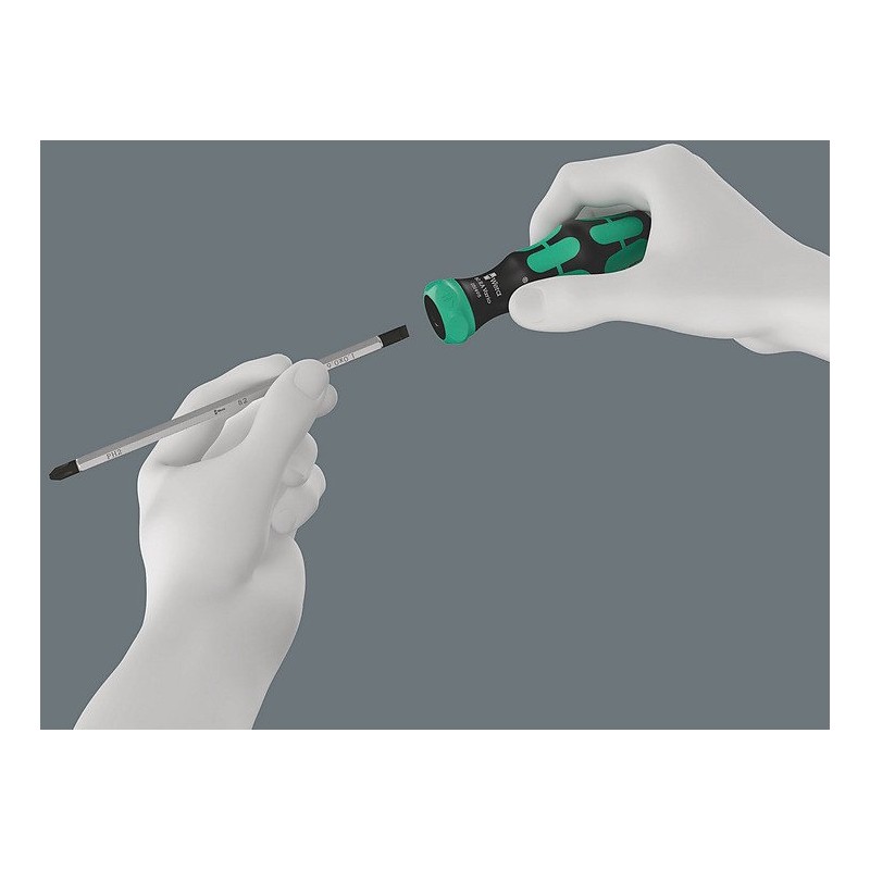 Der Griff des Wera Kraftform-Sets wurde für maximalen Bedienkomfort entwickelt. Ausgestattet mit einem feinverzahnten Ratschenmechanismus ermöglicht er schnelles und präzises Anziehen, was die Arbeit erheblich beschleunigt. Durch seine ergonomische Form liegt das Werkzeug perfekt in der Hand, was bei langwierigen Aufgaben entscheidend ist.