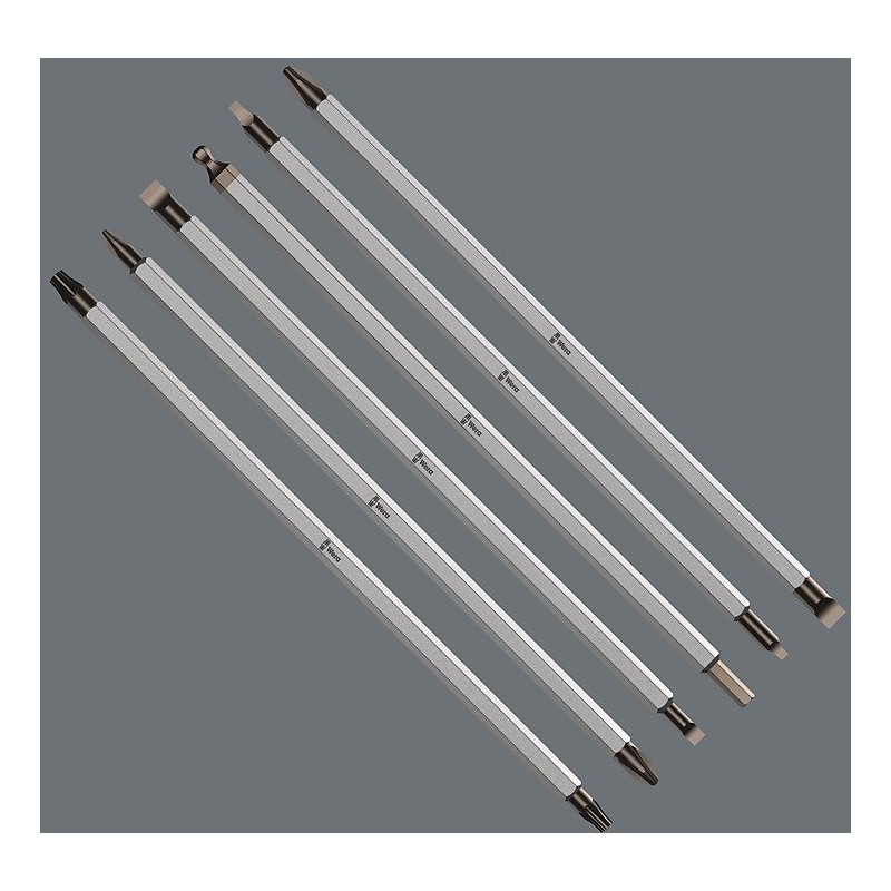 Das Set enthält sechs doppelseitige Vario-Schraubendreherbits, die aus Materialien höchster Qualität gefertigt sind. Dadurch können sich Anwender ihrer Langlebigkeit und Effizienz bei verschiedenen Anwendungen sicher sein. Die Länge der Bits beträgt 175 mm, was Komfort bei der Arbeit an schwer zugänglichen Stellen gewährleistet.
