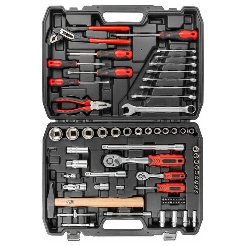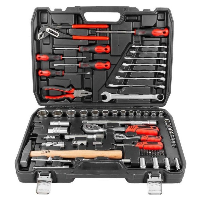 Das Standard-Werkzeugset enthält Schraubenschlüssel, Schraubendreher, Hämmer, Zangen, Steckschlüsseleinsätze, Ratschen und viele weitere Werkzeuge. Alle Werkzeuge sind solide aus hochwertigen Materialien gefertigt, was für Langlebigkeit, Robustheit und Effizienz sorgt.