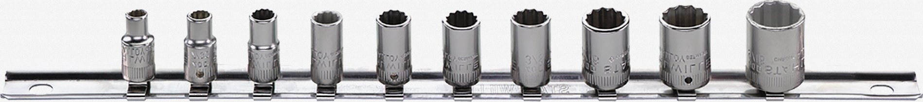 1/4"-Steckschlüsseleinsatz-Set 40aD 3/16"-9/16" auf einer Leiste