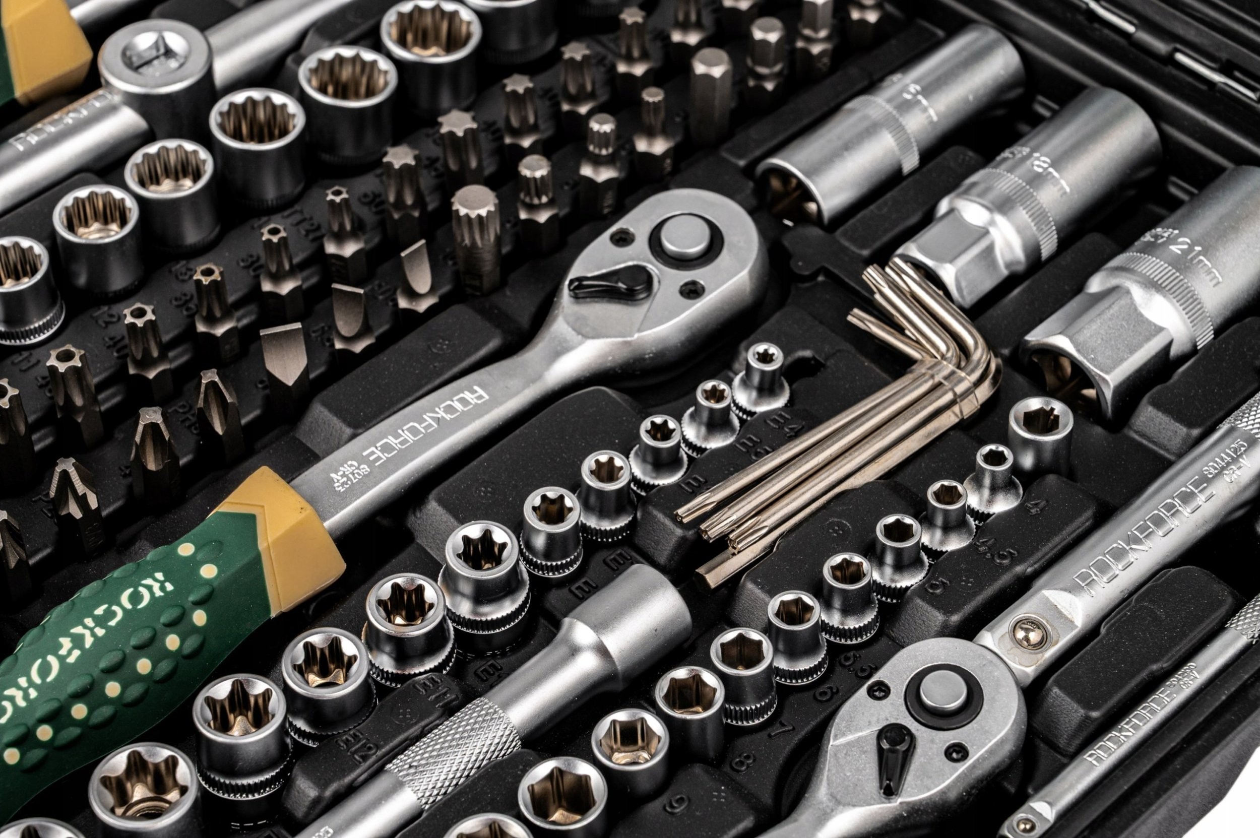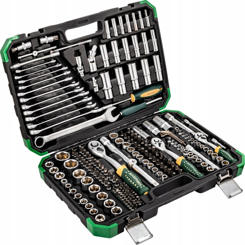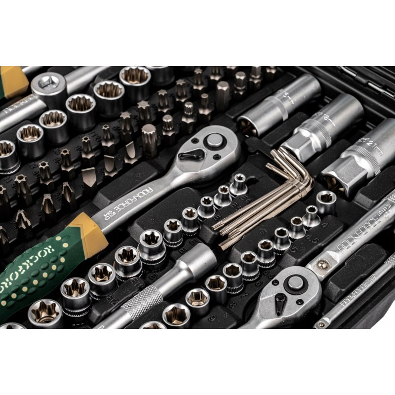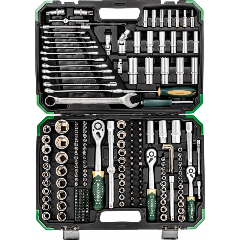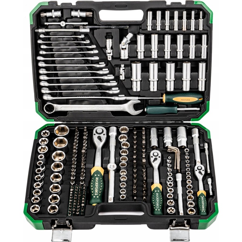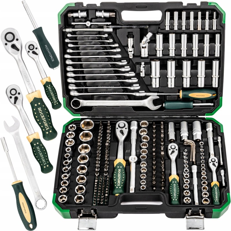 Das praktische Rockforce-Werkzeugset ist eine hervorragende Wahl für jeden Heimwerker. Bestehend aus 216 Teilen, darunter Steckschlüssel, Gabelschlüssel, Bits und Ratschen, bietet dieses Set die Vielseitigkeit und Funktionalität, die in jedem Haushalt, jeder Garage oder jeder Werkstatt unverzichtbar sind. Dank der vielfältigen Steckschlüsselgrößen eignen sich diese Werkzeuge perfekt für zahlreiche Anwendungen.