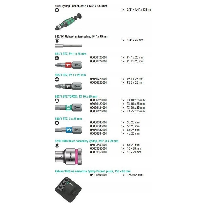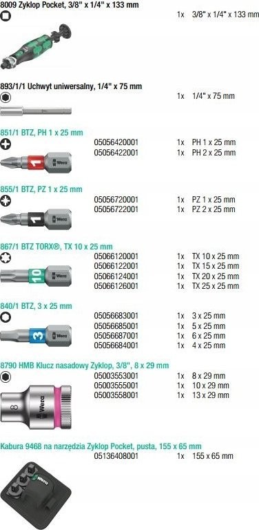 Technische Daten des Werkzeugsets Wera 8009 Zyklop Pocket Set 2