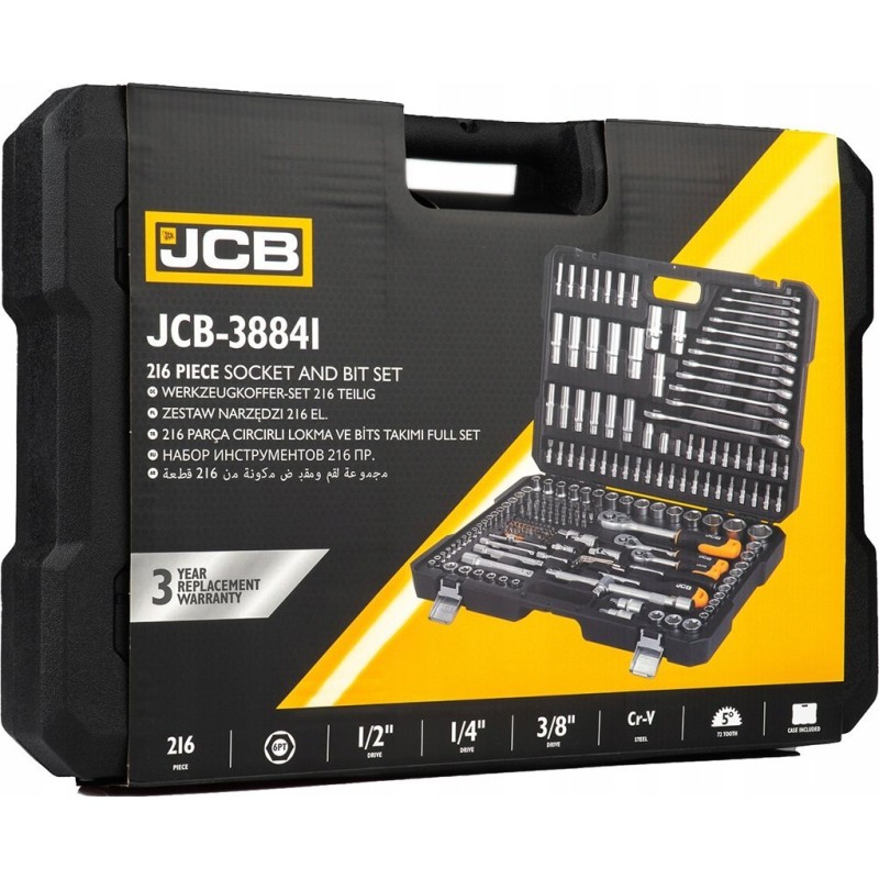 JCB-Werkzeugset JCB SCHRAUBENSCHLÜSSEL-SET 216-teilig 1/2" 3/8" 1/4" – Ein Muss für jeden Heimwerker
