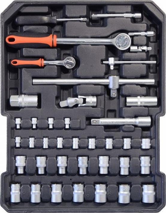 1x Steckschlüssel 1/2 1x Steckschlüssel 1/4 1 x Verlängerungsstange 1/2 1 x T-Stange für 1/4-Bits Schraubendreher 1 1/4" 13x Verlängerung 1/4 (4, 4,5, 5, 5,5, 6, 7, 8, 9, 10, 11, 12, 13, 14 mm) 14x Verlängerung 1/2 (8, 9, 10, 11, 12, 13, 14, 15, 16, 17, 18, 19, 20, 21 mm) 2x Verlängerung 1/2 (16, 21 mm) Gelenkadapter 1x 1/2 Gelenkadapter 1x 1/4 1x Verlängerung 1/2 Verlängerung 120 mm 1x Verlängerung 1/4 mm 50 mm 1x Verlängerung 1/4 mm 100 mm