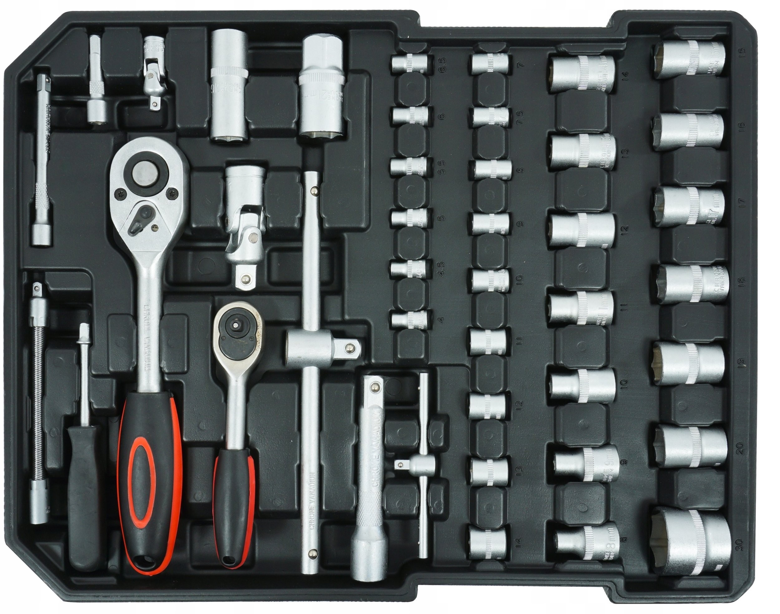 - Werkstoff der Werkzeuge: Chrom-Vanadium-Legierungsstahl