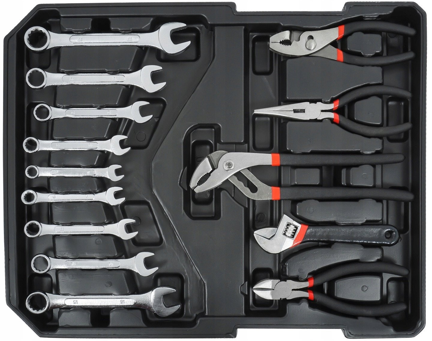 Die Werkzeuge im Set sind aus hochwertigem Chrom-Vanadium-Legierungsstahl gefertigt, was ihre Langlebigkeit und Zuverlässigkeit gewährleistet. Moderne Oberflächenbehandlungstechnologien verbessern nicht nur die Optik, sondern erhöhen auch den Bedienkomfort dank gummierter, rutschfester Bereiche.