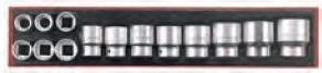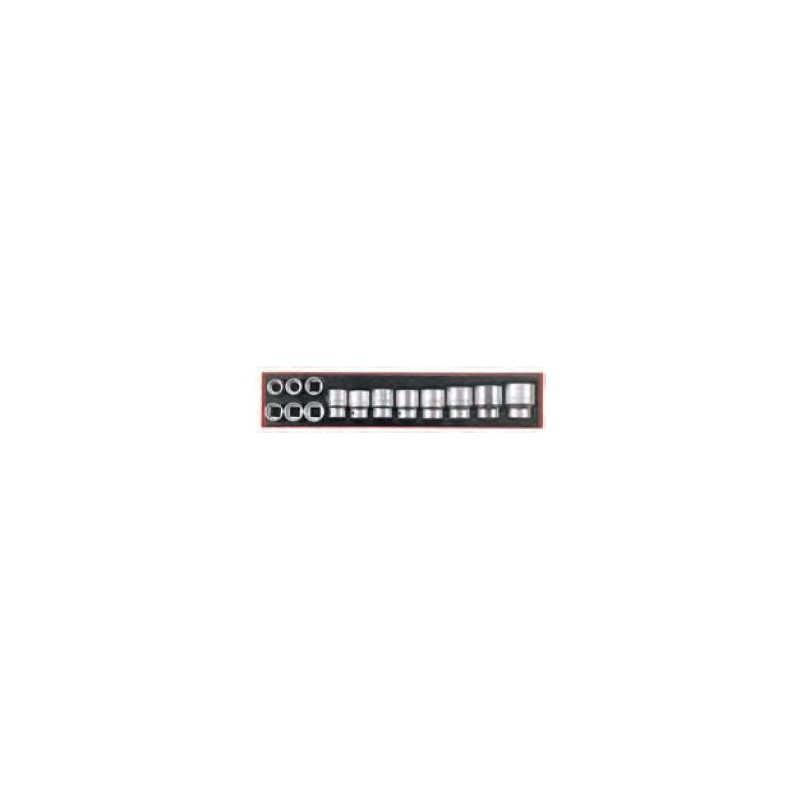 Aus Chrom-Vanadium-Stahl. Das Set enthält 14 Steckschlüsseleinsätze in Zollgrößen mit Sechskant-Aufnahme. Lieferung in einem Behälter, der in Werkzeugkisten und -wagen von Teng Tools passt