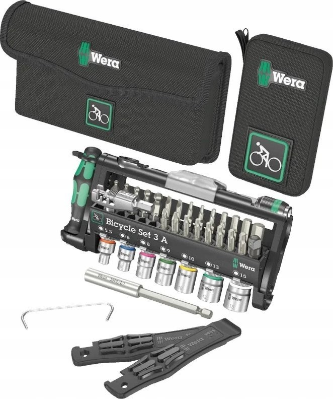 Werkzeugsatz Wera Wera Bicycle Set 3 A, 40-teilig (schwarz/grün, inklusive umkehrbarer Ratsche mit 1/4-Zoll-Aufnahme)