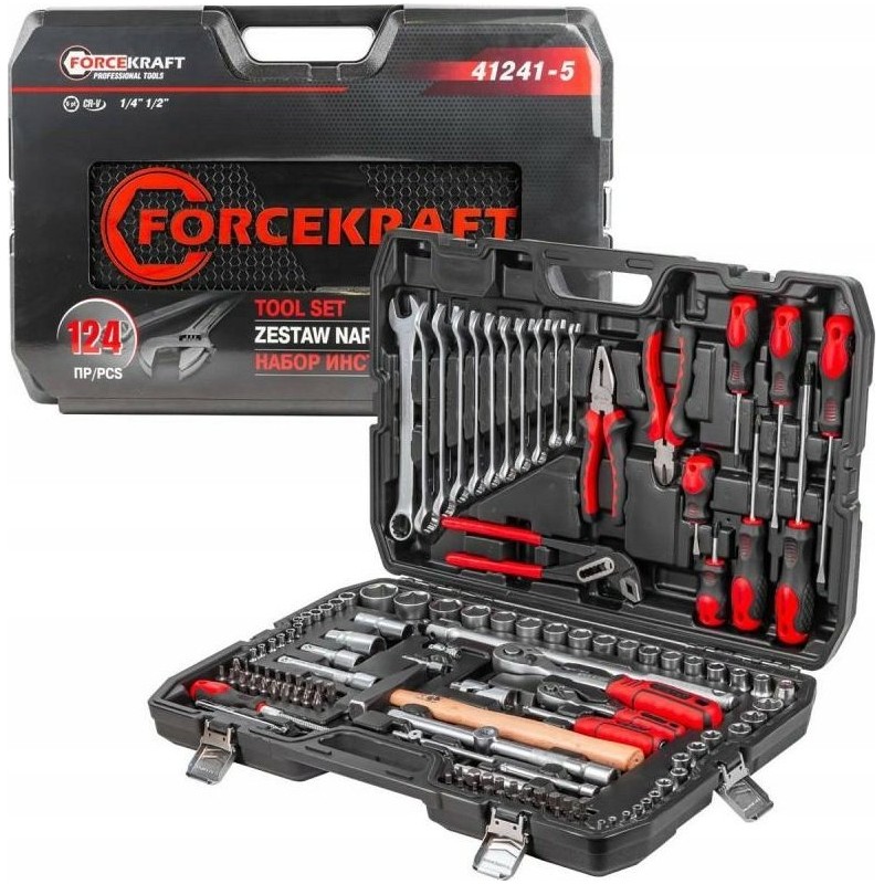 Forcekraft-Werkzeugsatz 1/4"- und 1/2"-Werkzeugsatz, 124-teilig (4–32 mm) (Sechskant)