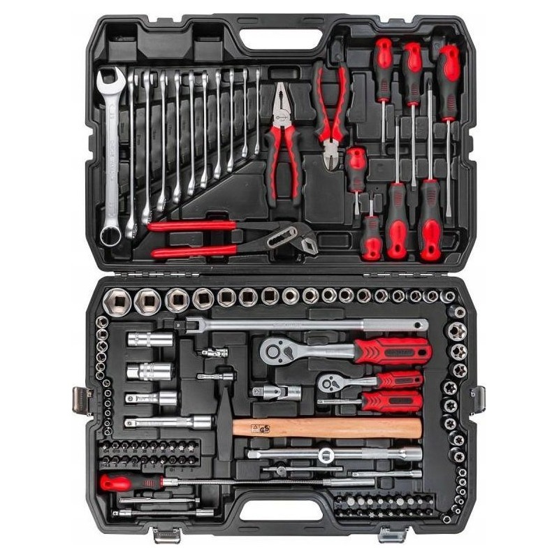 Werkzeugset im Koffer: Steckschlüssel, Steckschlüsseleinsätze, Ratsche 1/4" 1/2" 124-teilig