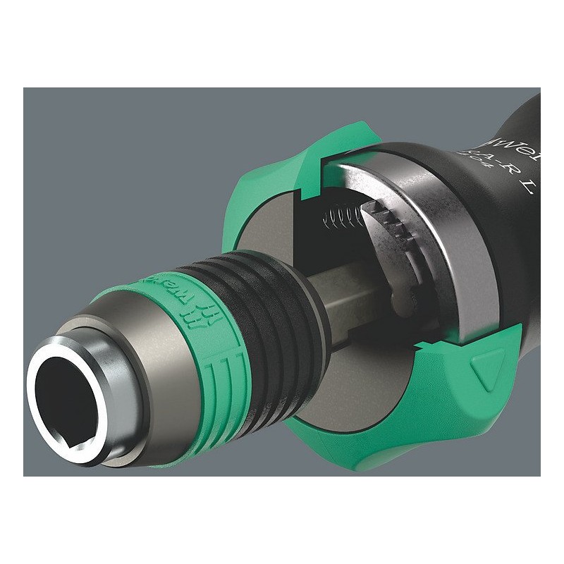 Der Wera Kraftform Kompakt 60 RA-R Imperial 1 ist mit der modernen Rapidaptor-Technologie ausgestattet, die einen blitzschnellen Wechsel der Bits ermöglicht. So kannst du das Werkzeug schnell an deine Bedürfnisse anpassen, was das Ein- und Ausdrehen von Schrauben erheblich beschleunigt.
