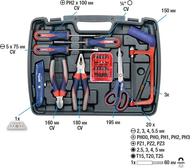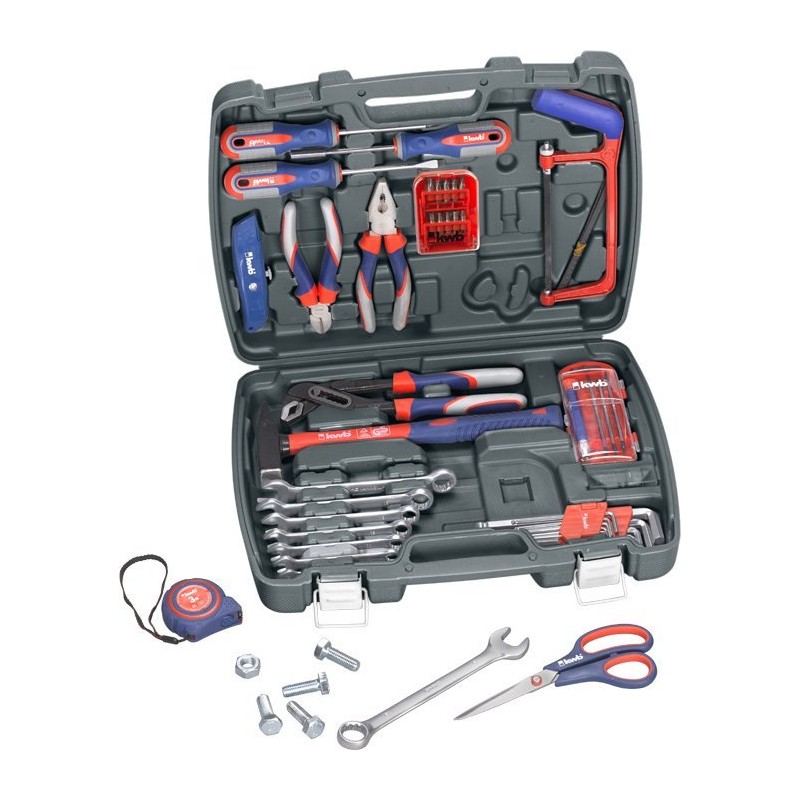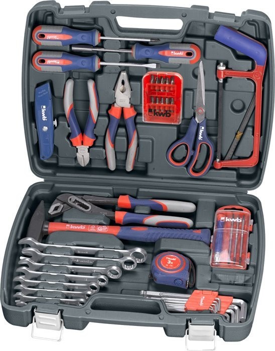 - Der Werkzeugkoffer ist die ideale Grundausstattung für jedes Haus, jede Garage oder jeden Campingplatz. Ausgestattet mit den wichtigsten Werkzeugen für jede Gelegenheit.